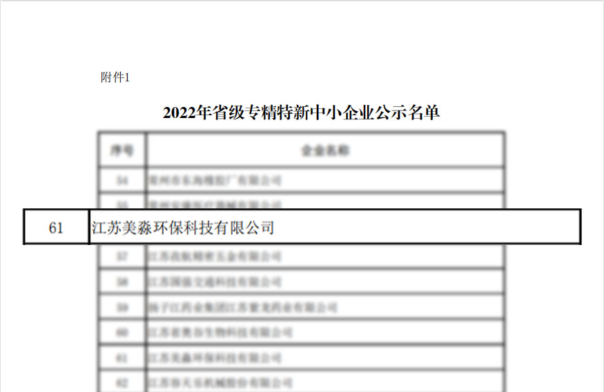 喜報(bào)丨美淼環(huán)保入選首批江蘇省2022年專精特新中小企業(yè)
